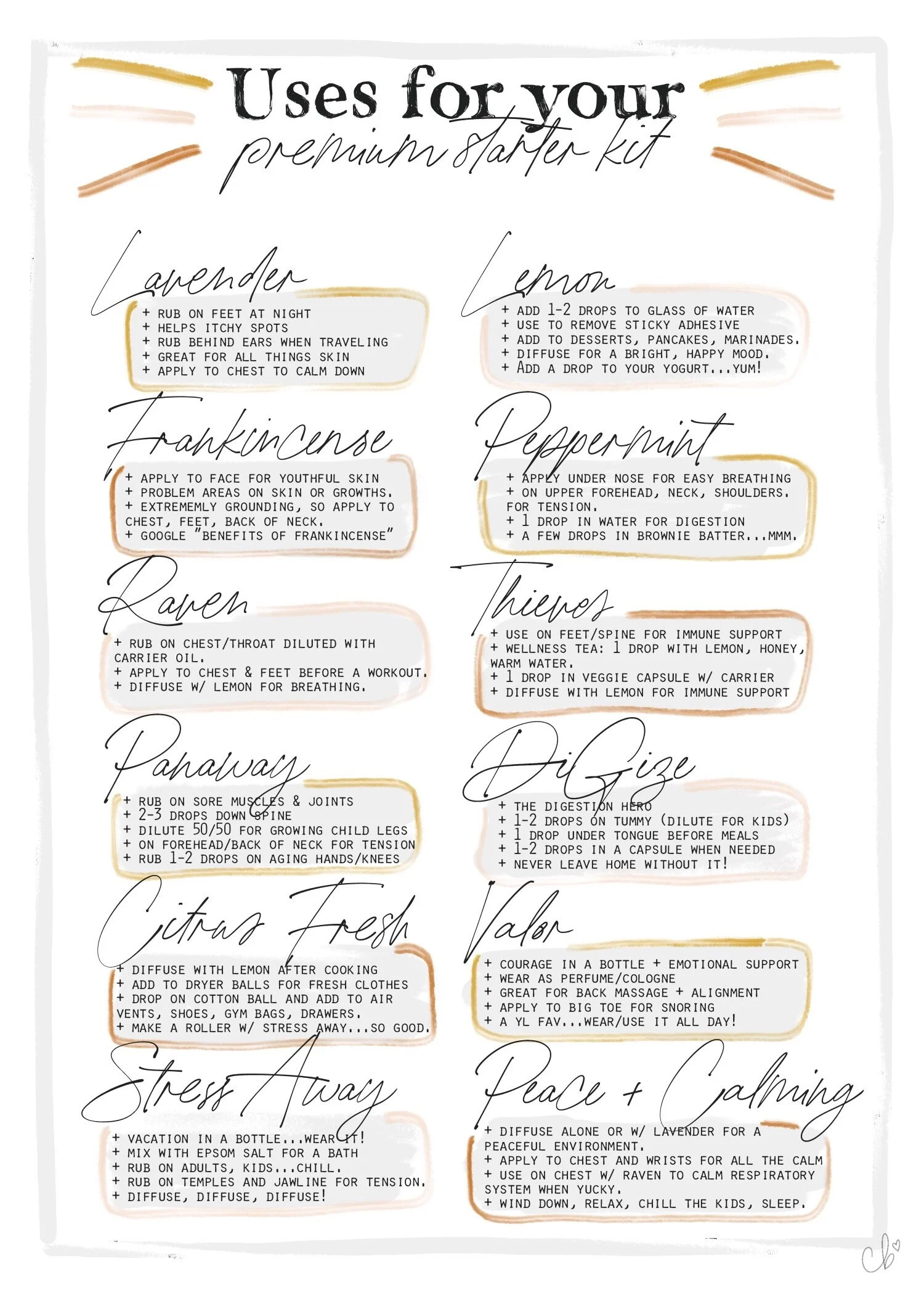 Valor - our courage oil, brings calms, use for bruising etc.